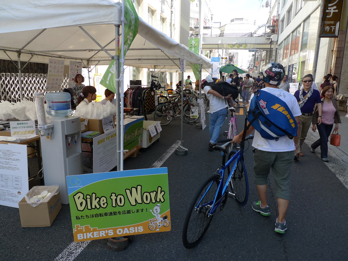高松自転車便は自転車来場者へのお土産の配布やエコドリンクの販売をします。
